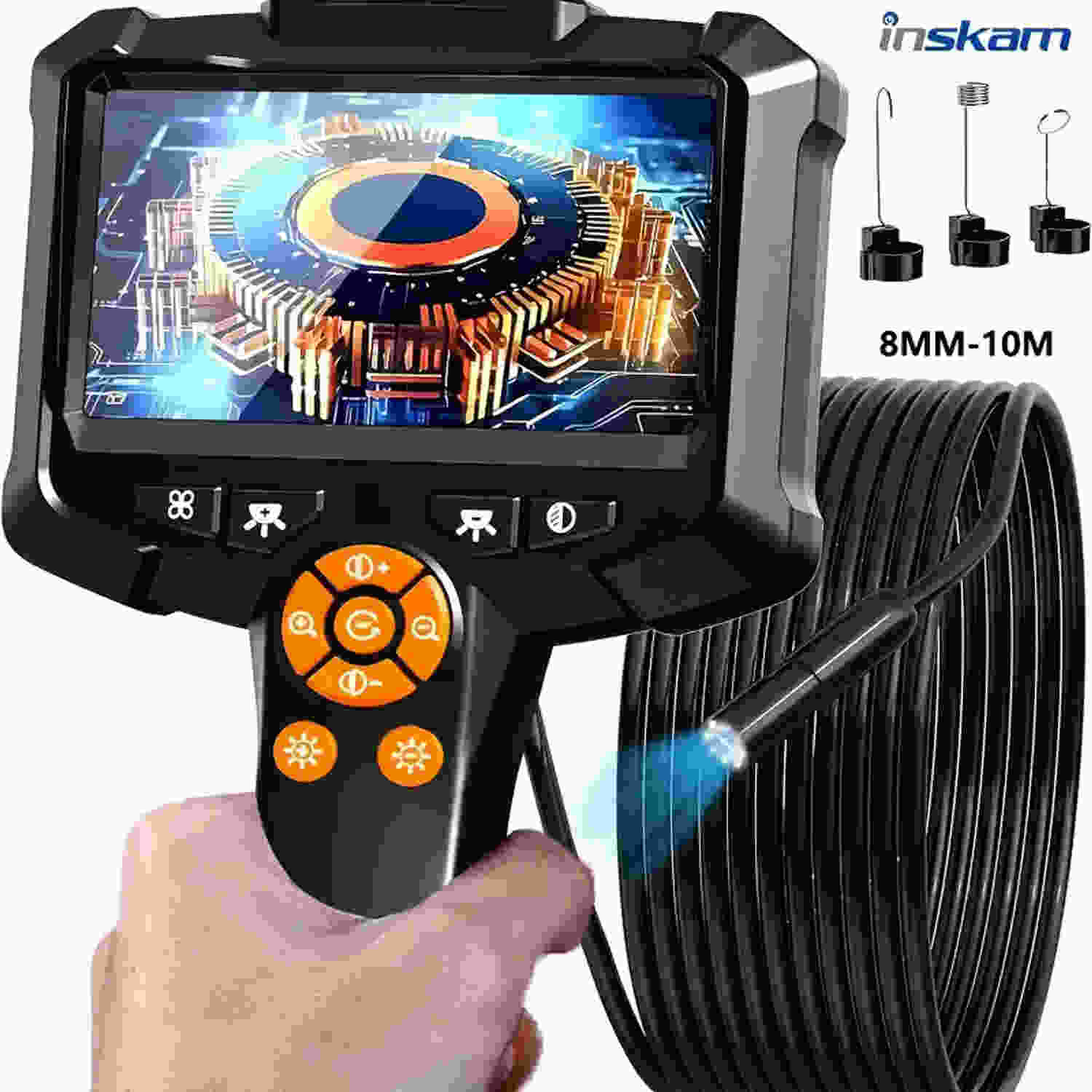 4.3-inch Industrial Endoscope, High-definition 8mm Single Lens IP67 Waterproof Endoscope, Used for Car Maintenance, Machine Inspection, Sewer, Air Conditioning Testing Inskam